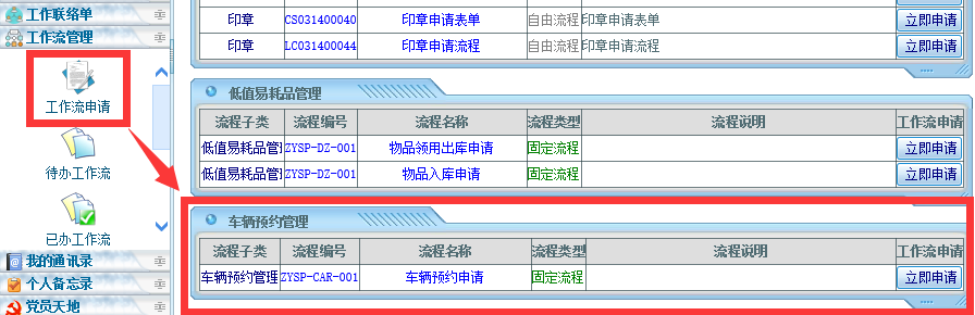 点晴OA车辆预约管理模块使用流程如下: