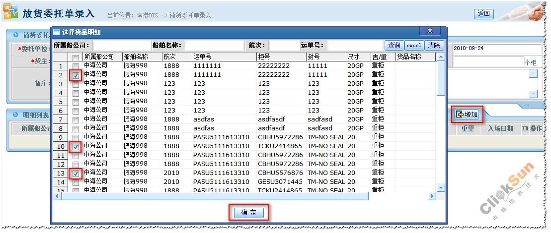 点晴PMS集装箱码头管理信息系统——放货委托录入