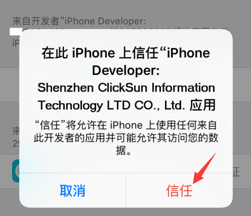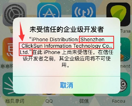 点晴MIS信息通苹果手机APP安装失败(IOS9版):弹出未受信任的企业级开发者,无法取消,如何解决?