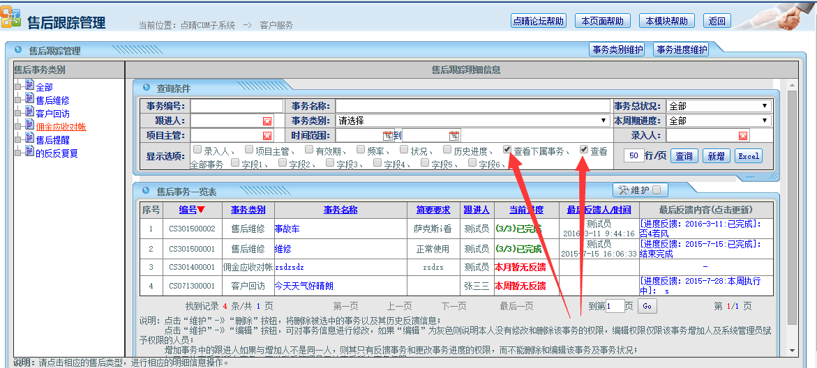 点晴OA的CDM/CRM模块售后跟踪管理看不见别人发布的信息,要如何设置?
