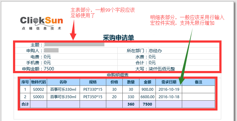 :点晴OA工作流表单模板中添加的控件字段数量最多只能99个可用吗?如果需要更多要如何解决?![]() ![]() 上面是一个典型的工作流表单模板结构,一般工作流表单是由主表、或者主表加明细表构成,点晴OA工作流表单模板中主表部分控件数量最多只能99个。 如果模板中有明细表结构(动态增加相同行),那么应该考虑将明细表部分改为使用行输入宏控件实现,而不是手工画出很多行,然后在每一行的单元格中插入很多个字段来实现,下面这个红色框部分就是不好的做法,应该采用行输入宏控件实现: ![]() 为什么限制为99个控件,原因是普通业务系统,如果需要操作人员填入的数据太多,会导致操作效率十分低下,而且十分容易出错。 对于有大量数据录入处理的需求,应该采用专业设计的系统、或者联系点晴公司专门定制开发数据输入界面,快速高效完成数据的采集录入。 相关教程: