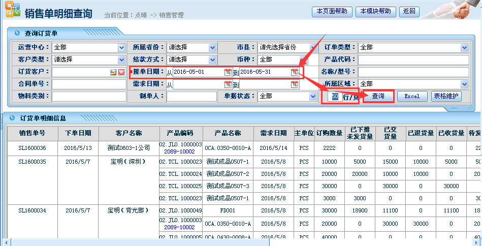 操作步骤:销售管理——销售订单管理——订货单明细管理;如下图所示: 设置对应的查询条件:时间范围;显示页数; 找到对应的项目栏,页面最下方有汇总数据 点晴模切ERP更多信息:https://moqie.clicksun.cn,联系电话:4001861886 该文章在 2016/6/8 11:21:13 编辑过 |