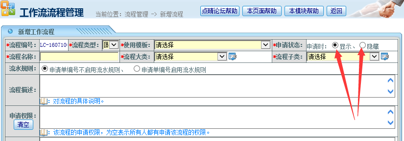 点晴永久免费OA工作流流程设计时里面的这个显示和隐藏的作用是什么?如何使用?