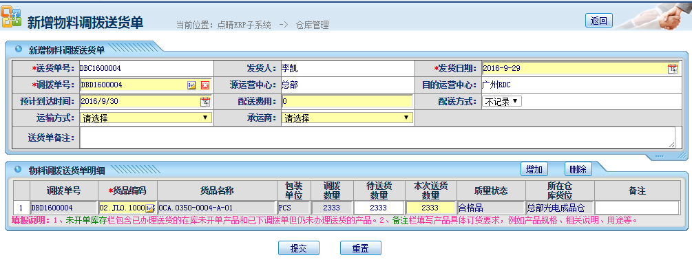 点晴模切ERP/进销存/CRM/DRP/WMS中仓库调拨操作流程