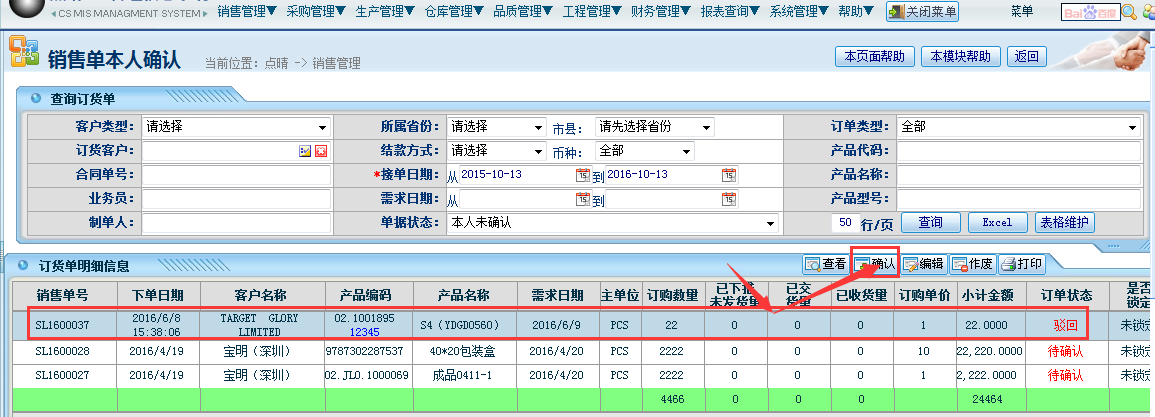 操作步骤: 销售管理——销售订单管理——待本人确认订单 点晴模切ERP更多信息:https://moqie.clicksun.cn,联系电话:4001861886 该文章在 2016/10/13 11:00:21 编辑过 |