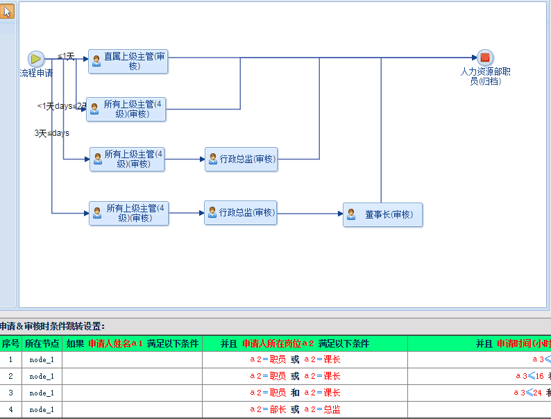 :点晴OA工作流中预置的考勤类表单模板如何增加自定义字段作为流程设计时的条件跳转判断字段?![]() 点晴OA工作流中预置的考勤类表单模板目前不支持自定义字段为条件跳转判断字段,必须使用系统预置的三个跳转字段:申请人、申请人所在岗位、申请时间。 ![]() 该文章在 2016/11/8 14:50:31 编辑过 |