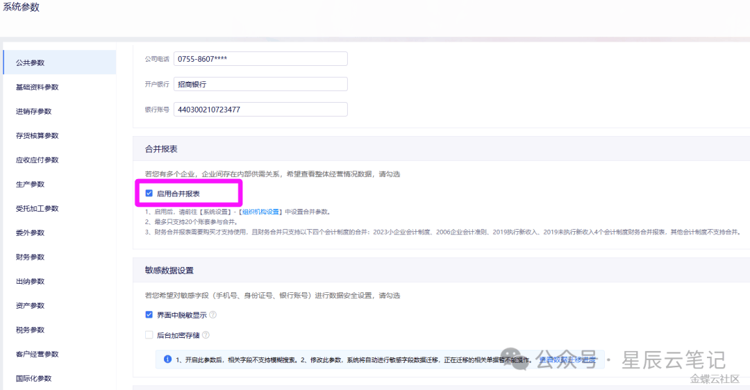 1、星辰财务合并报表——(1)参数设置2、星辰财务合并报表——(2)组织机构设置3、星辰财务合并报表——(3)科目映射4、星辰财务合并报表——(4)报表模板管理5、星辰财务合并报表——(5)个别报表1、星辰财务合并报表——(1)参数设置1、【系统设置】-【参数设置】-【公共参数】-【合并报表】勾选“启用合...