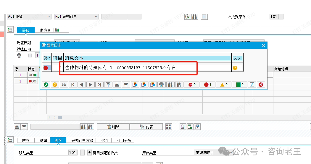 前两天,有个用户咨询了一个关于工序外协收货的问题,在工序外协业务中,到底要不要在系统内给外协供应商做组件发料操作,这个是哪里决定的呢?我觉得问题分析的过程挺有意思,今天抽个时间和大家唠一唠。1业务问题还原前两天在群里接到用户的一个截图问题(截图如下),他说在做外协订单收货时报错了,提示“物料特殊库存OXXXXXXXX不...