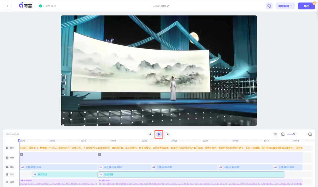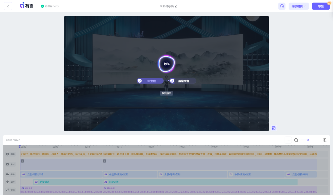 到这里,咱们花了不到10分钟,就完成了一个形象生动的3D数字人讲解古诗的视频作品,你学会了吗?